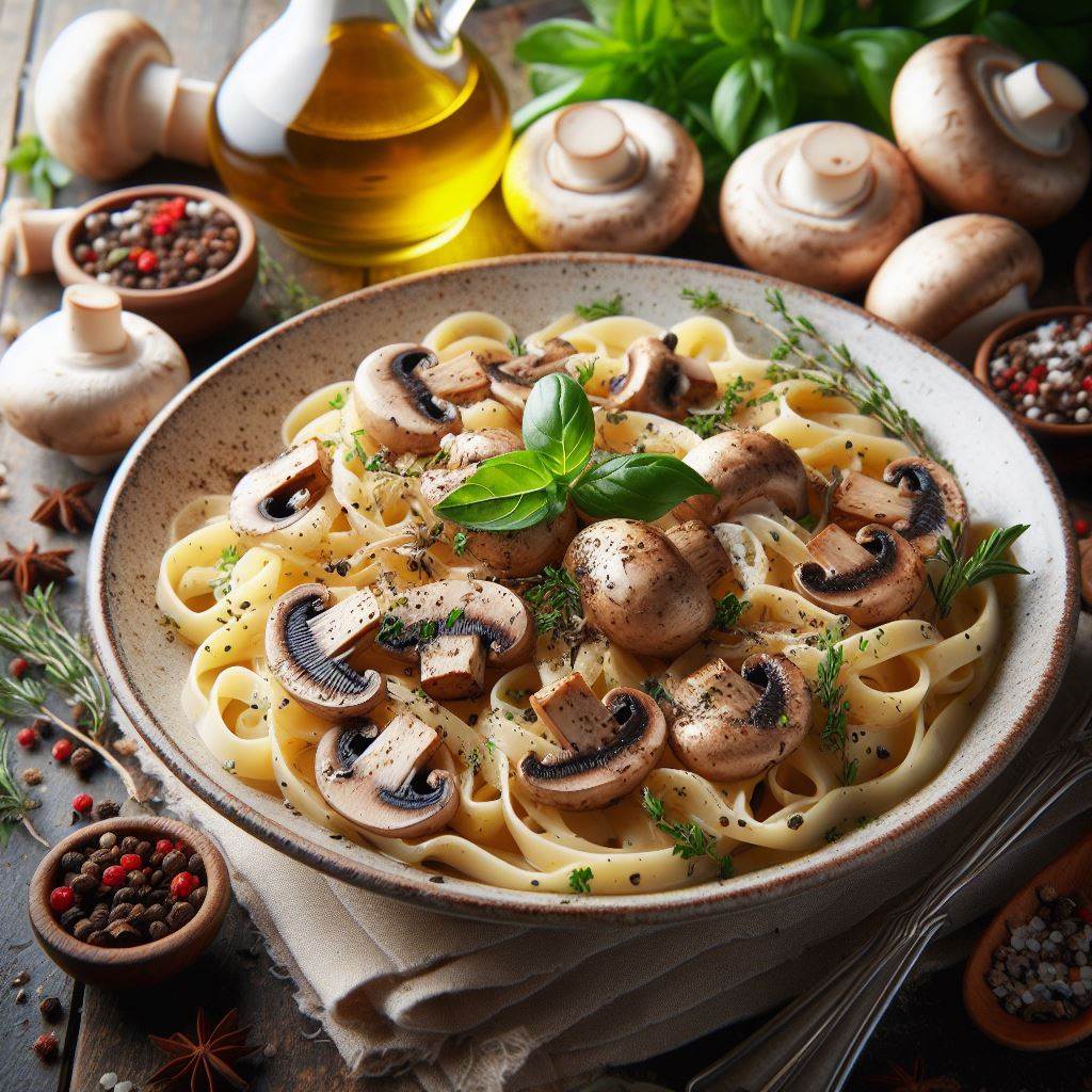 マッシュルームとハーブのクリームソースパスタ
