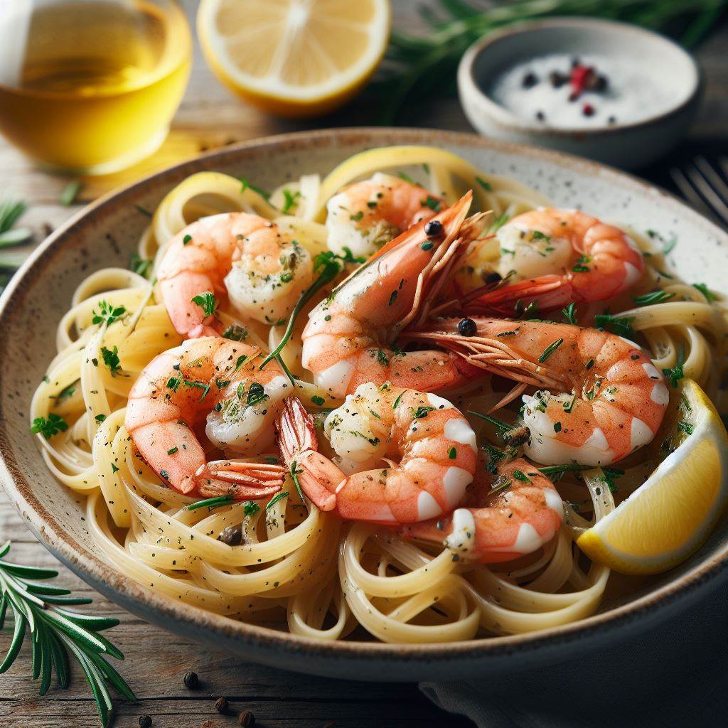 ハーブとレモンのガーリックシュリンプパスタ